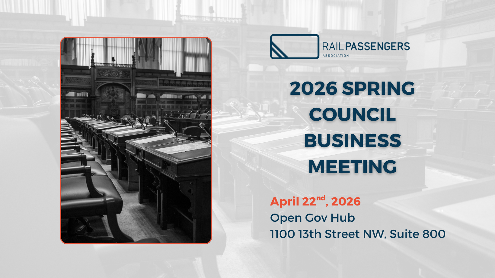 Stay tuned to www.railpassengers.org/2026SpringCouncilMeeting for more information.